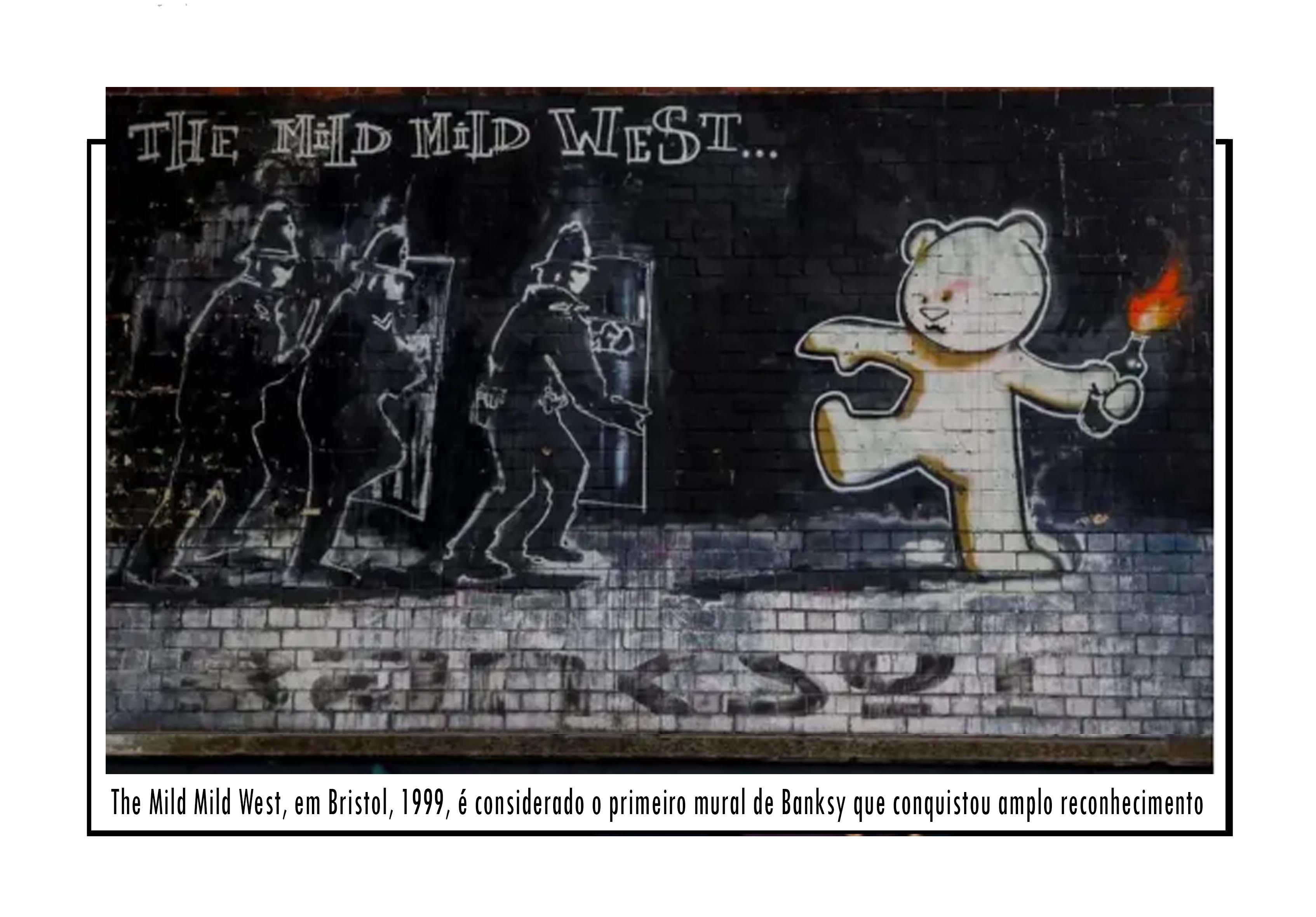 BANKSY, SUMIDADE ENTRE AS SUMIDADES da arte de rua em todo o mundo, teve seu nome real – até então secreto – anunciado como descoberto por uma investigação patrocinada pela Agência Reuters. O mistério em torno da identidade do artista se alongou por, pelo menos 27 anos, desde a notoriedade internacional conquistada por suas pinturas murais na cidade inglesa de Bristol. Apesar das evidências de que a apuração tenha sido criteriosa, uma aura de mistério ainda paira sobre a esquiva criatura, até porque durante muito tempo se especulou ser aquela assinatura uma expressão de um codinome coletivo e não uma individualidade.